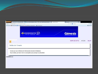El documento presenta información sobre los sistemas de información institucional de la Corporación Universitaria Minuto de Dios. Describe la misión y visión de la universidad de ofrecer una educación superior de alta calidad y accesible, formando profesionales éticos comprometidos con la transformación social. Además, resume los derechos y deberes de los estudiantes y los procedimientos para consultar calificaciones y horarios de clases.