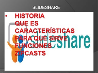 SlideShare es un sitio web lanzado en 2006 para compartir presentaciones en formato de diapositivas. Los usuarios pueden subir presentaciones de PowerPoint, Word, PDF y otros formatos. Con más de 12 millones de visitas mensuales, el sitio permite comentar y compartir el contenido subido. En 2012 fue adquirido por LinkedIn.