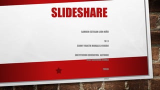 SlidesShare es un sitio web que permite a los usuarios subir y compartir presentaciones de PowerPoint de manera pública o privada. Ofrece la posibilidad de almacenar presentaciones de hasta 20MB con nombre, descripción y etiquetas, y compartirlas a través de correos electrónicos o buscar y comentar las presentaciones de otros usuarios.