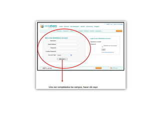 Slideshare es una aplicación gratuita que permite almacenar y compartir en línea presentaciones, archivos de texto y videos. Se puede utilizar para mostrar el trabajo de los alumnos a través de imágenes en blogs y páginas web, así como para armar presentaciones para eventos institucionales y apoyar la clase del docente con material audiovisual. Requiere registro con correo electrónico, nombre de usuario y contraseña.