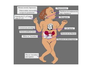 El síndrome de Edwards se caracteriza por la trisomía del cromosoma 18 y se presenta con retraso de crecimiento, microcefalia, orejas bajas y anormalidades en las manos y los pies. Los bebés con síndrome de Edwards también suelen presentar defectos cardíacos y otros órganos, y el diagnóstico se confirma mediante cariotipo. El pronóstico es muy grave y la mayoría de los bebés no sobreviven más de un año.