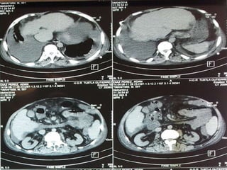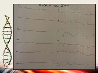 El documento describe un caso clínico de un paciente masculino de 55 años que presenta dificultad respiratoria y cianosis, junto con antecedentes de cardiopatía desde la infancia. Además, se aborda el Síndrome de Noonan, caracterizado por talla baja, cardiopatías y alteraciones faciales, detallando su etiología, incidencia y manifestaciones clínicas. Se discuten factores genéticos, así como los diferentes tipos de alteraciones y síntomas asociados al síndrome.