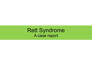 El documento presenta un caso clínico de una niña de 10 años diagnosticada con el síndrome de Rett, que muestra regresión en habilidades de comunicación y motricidad a partir de 18-36 meses. Se detallan criterios de diagnóstico desde las clasificaciones DSM-IV y CIE-10, así como las etapas del desarrollo del síndrome y sus implicaciones clínicas. El tratamiento es esencialmente paliativo, y un diagnóstico preciso es vital para mejorar la calidad de vida de los pacientes.