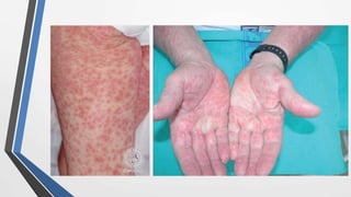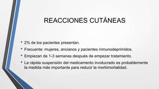 El documento describe el síndrome de Stevens-Johnson, una reacción cutánea grave causada comúnmente por medicamentos. Se caracteriza por ampollas y erosiones en la piel y mucosas. Los síntomas incluyen fiebre, dolor y afectación de órganos. Se detallan los medicamentos implicados y un caso clínico de un niño que desarrolló el síndrome después de tomar dos antibióticos.