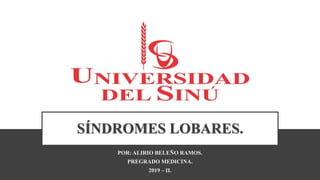 El documento aborda los síndromes lobares, describiendo síntomas y signos relacionados con lesiones cerebrales focales, y su clasificación según la afectación de diferentes lóbulos (frontal, parietal, temporal y occipital). Se discuten las funciones específicas de cada lóbulo y las manifestaciones clínicas asociadas a sus lesiones, incluyendo problemas de lenguaje, memoria, percepción sensorial y motoras. Además, se presenta un caso clínico que ilustra la afectación frontal y parietal, resultando en afasia global y hemiplejia.