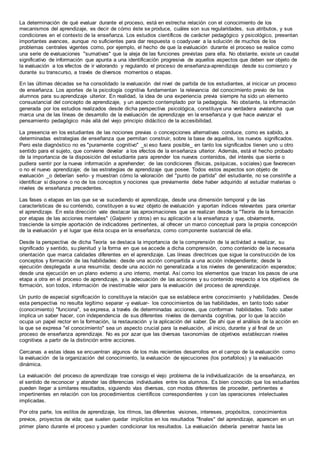 Este documento discute el objeto de la evaluación del aprendizaje. Explica que el objeto de la evaluación depende de los objetivos de la enseñanza y del aprendizaje, y que históricamente ha evolucionado de la evaluación de resultados académicos a la evaluación de procesos y productos, lo singular sobre lo estandarizable, y una visión más holística del estudiante. También destaca la importancia de evaluar el punto de partida del estudiante, las etapas del aprendizaje, y las diferencias individuales, en lugar