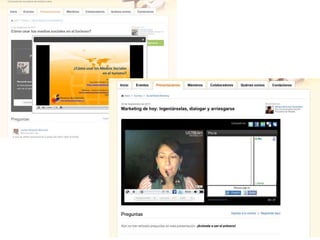 Este documento describe diferentes tipos de eventos participativos como BarCamps, Super Happy Dev House, Pio.la y Complaints Choir. Los BarCamps son conferencias donde los participantes proponen y presentan temas siguiendo reglas como presentaciones cortas e interactividad. Super Happy Dev House y Pio.la son eventos en línea abiertos para compartir conocimiento sobre tecnología. Complaints Choir organiza coros para que la gente exprese sus quejas a través de la música. Estos eventos promueven la participación, brevedad, contacto entre personas y menos