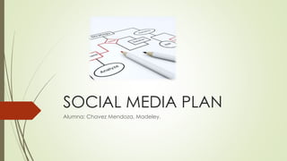 El documento describe los pasos para elaborar un plan de medios sociales efectivo. Explica que primero se deben establecer objetivos cuantificables y delimitar el público objetivo. Luego, se investiga la situación actual de la marca y se diseña un enfoque original para trazar una estrategia adecuada. Finalmente, se monitorea el progreso y se mide el impacto para garantizar que se cumplan los objetivos.