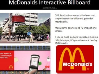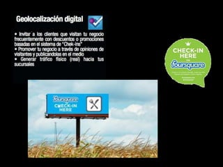 El documento describe cómo las nuevas tecnologías y redes sociales están transformando el marketing y la forma en que las marcas se comunican con los consumidores. Explica que el marketing se está moviendo de lo masivo a lo personalizado, y que es necesario construir "Social Roadz" que lleven a los objetivos de negocio a través de las redes sociales. También destaca que los consumidores están sobrecargados de fuentes de información y canales de comunicación, por lo que las marcas deben sincronizar e integrar sus mensajes a través de múlt
