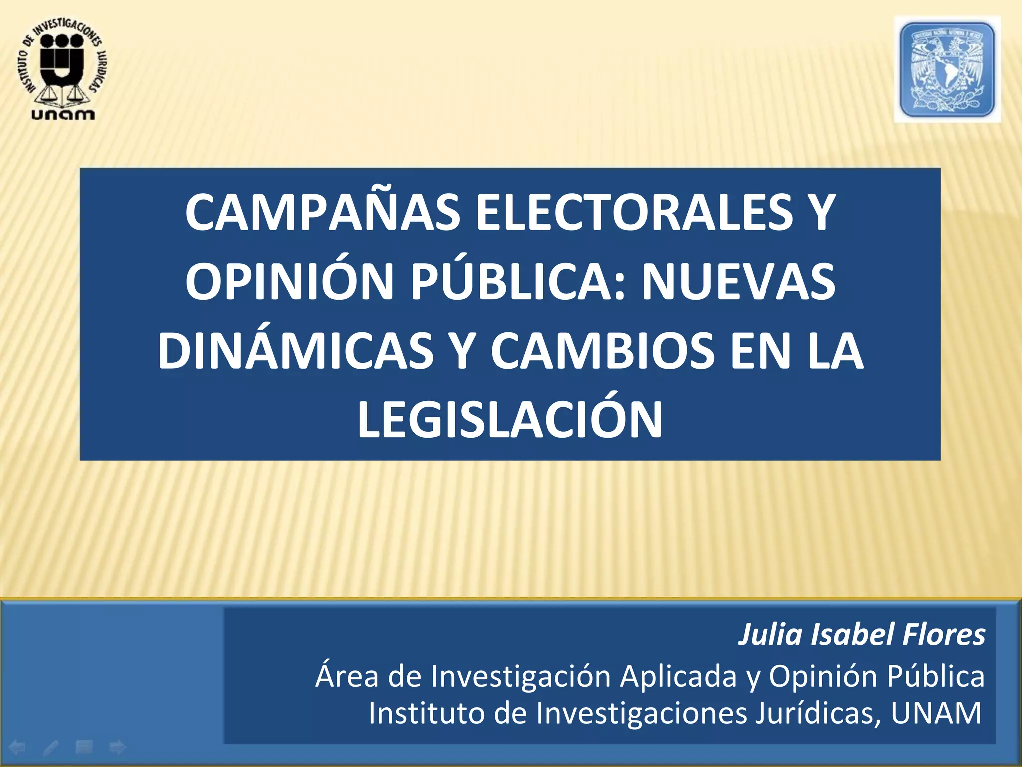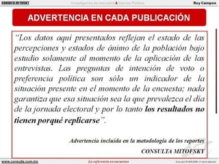 Este documento resume los cambios en las dinámicas de las campañas electorales y la opinión pública en México, incluyendo el papel creciente de los medios, la importancia de las encuestas, y cuestionamientos sobre si la legislación actual es adecuada para estas nuevas realidades. Se argumenta que las encuestas son sobreutilizadas y malinterpretadas, y que su regulación debería enfocarse menos en su supuesto poder de influencia y más en aspectos como su metodología y transparencia.