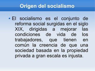 El documento resume los orígenes y características del socialismo y el capitalismo. El socialismo surgió en el siglo XIX para mejorar las condiciones de los trabajadores. Propone la propiedad social sobre los medios de producción. El capitalismo apareció en el siglo XIII sustituyendo al feudalismo, con el objetivo de producción y beneficio económico privado. Personajes como Adam Smith, Marx y los neoliberales influyeron en la evolución de ambos sistemas.