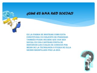 Una red social es un conjunto de personas que se conocen entre sí a través de la tecnología o en persona. El avance de Internet ha permitido que las redes sociales se desarrollen con más libertad. Mientras que las redes sociales pueden ser beneficiosas para la comunicación con familiares y compañeros de trabajo, su uso sin supervisión en niños y adolescentes puede generar adicción.