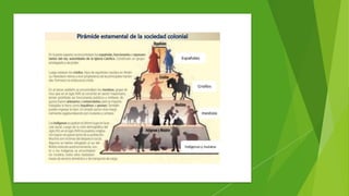 La sociedad colonial estaba dividida en estamentos sociales basados en la riqueza y la raza, con los individuos más blancos y europeos generalmente más ricos. El objetivo de la clase es identificar y explicar cómo los españoles segmentaron la sociedad colonial en castas, o grupos sociales distintos, debido a factores como la riqueza, la raza y el origen étnico.