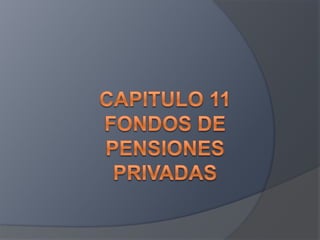 El documento habla sobre las sociedades de inversión, los administradores de inversión y los fondos de pensiones. Explica las generalidades de las sociedades de inversión y sus obligaciones de registro. También describe los diferentes tipos de sociedades de inversión que pueden registrarse, sus categorías, requisitos para el registro y más detalles sobre su funcionamiento.