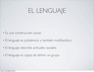 Este documento trata sobre la sociolingüística y las relaciones entre el lenguaje y la conducta social. Explica que el lenguaje es una construcción social que varía según factores como el nivel socioeconómico, la edad, el sexo y la educación. La sociolingüística estudia cómo estas variables sociales influyen en las variaciones lingüísticas entre grupos y cómo el lenguaje también puede influir en la estructura social.