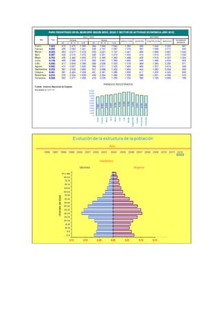 El municipio español de El Ejido, en la provincia de Almería, ha experimentado un rápido crecimiento demográfico desde 1994 debido a su economía basada en la agricultura y los servicios. El documento analiza la población, la economía, el mercado laboral y el presupuesto municipal de El Ejido, así como cuestiones educativas como el fracaso escolar y la población inmigrante.