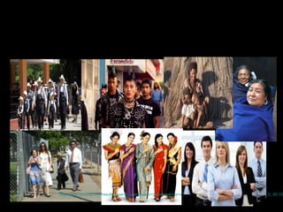 1) La sociología estudia científicamente la vida grupal de los seres humanos y cómo interactúan en grupos. 2) Se menciona que la pertenencia a grupos influye en el pensamiento y comportamiento de las personas. 3) El documento también discute la discriminación de género en el trabajo y cómo los hombres dominan la fuerza laboral y los puestos de poder.