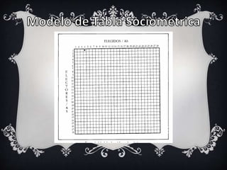 Jacob Levy Moreno desarrolló la sociometría, un método para medir y representar gráficamente las interacciones y relaciones sociales dentro de los grupos. La sociometría invita a los individuos de un grupo a elegir a otros miembros del grupo con quienes les gustaría interactuar. Los resultados se registran en una tabla sociométrica y luego se representan gráficamente en un sociograma, permitiendo identificar la estructura social del grupo.