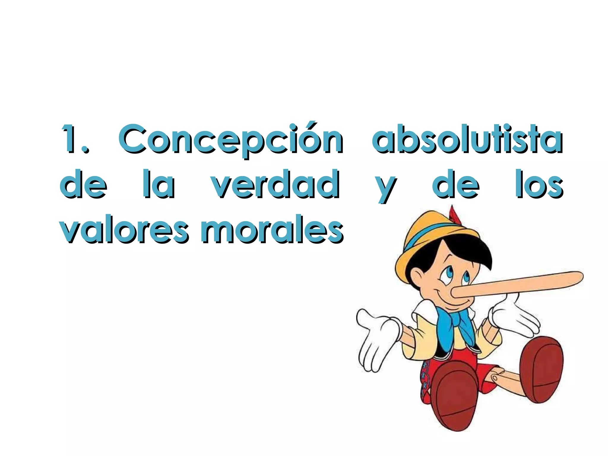 El documento habla sobre una concepción absolutista de la verdad y los valores morales que se basa en una opinión objetiva universal determinada por la razón y la lógica.