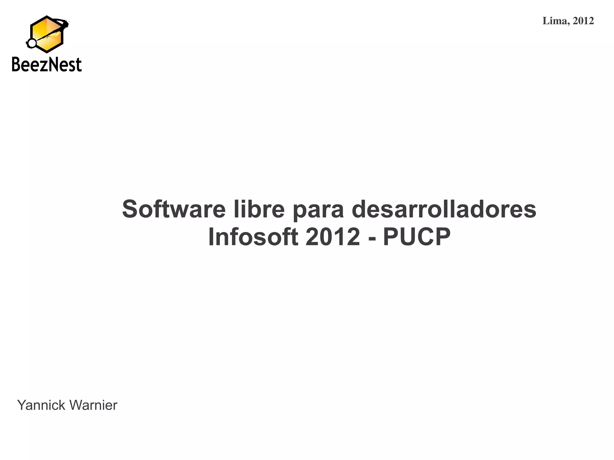El documento presenta una charla sobre software libre para desarrolladores. Cubre temas como las 4 libertades fundamentales del software libre, el estado actual del desarrollo de software, herramientas populares de software libre para desarrolladores como sistemas operativos, lenguajes de programación, bases de datos y más. El objetivo es mostrar las opciones de software libre disponibles para desarrolladores.