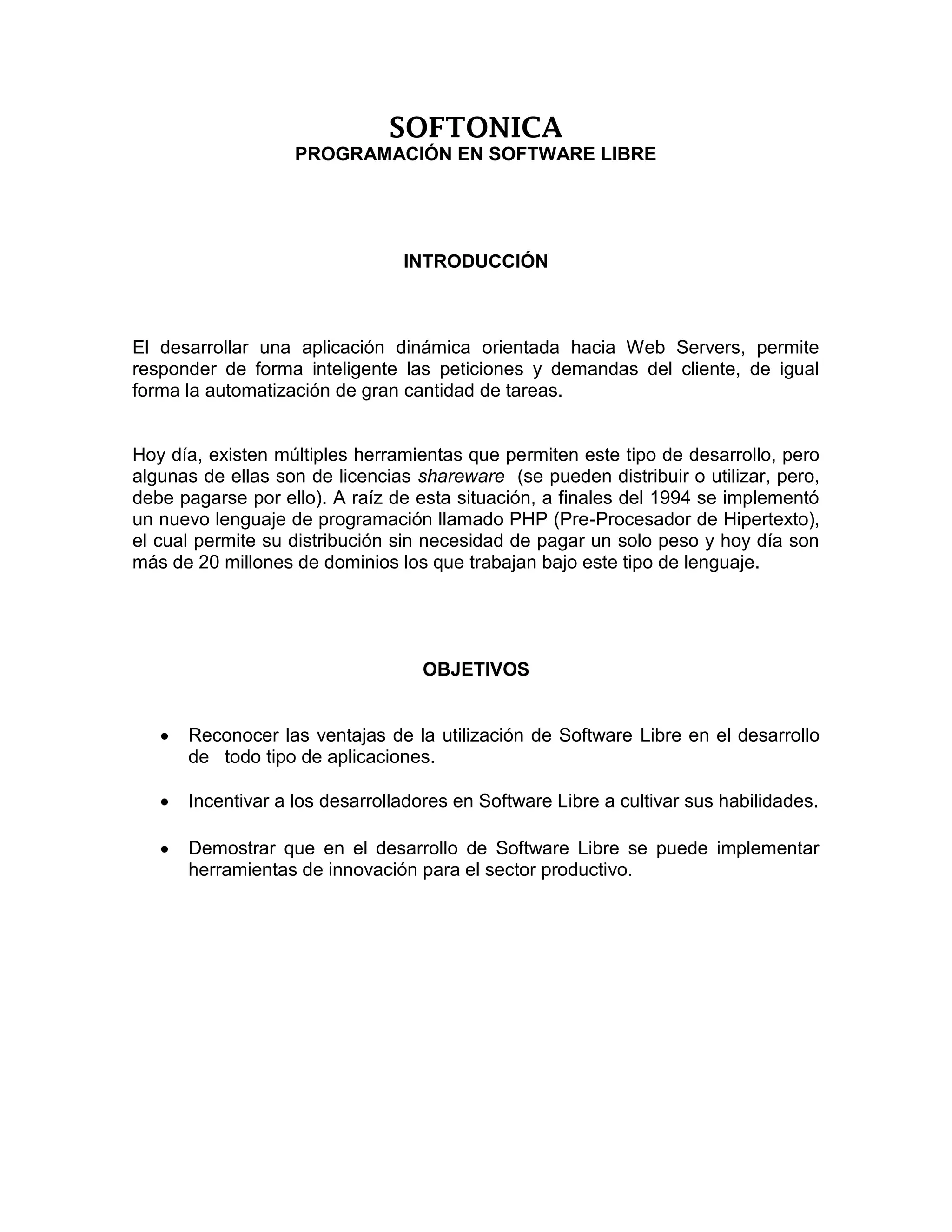 El documento describe una actividad de programación en software libre dirigida a estudiantes universitarios de ingeniería de sistemas. La actividad se enfoca en demostrar las ventajas del desarrollo de aplicaciones usando herramientas de código abierto. Los participantes tendrán 4 horas para desarrollar una aplicación web siguiendo los parámetros provistos, y la mejor aplicación será premiada considerando factores como organización del código, diseño de base de datos y funcionalidad.