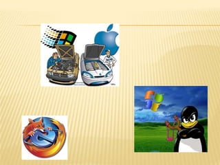 Este documento describe diferentes tipos de software, incluyendo software propietario, software libre y software gratuito. También describe varios sistemas operativos populares como Windows, Unix, Solaris, Linux, Mac OS y Android. Define sus características principales y orígenes.