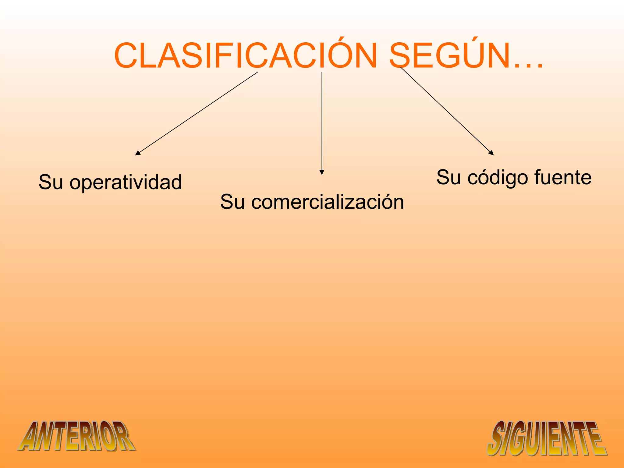 El documento clasifica el software según su operatividad, comercialización y código fuente. Explica que el software de sistema controla el hardware y soporta otros programas, el de aplicación permite realizar tareas específicas, y el de programación desarrolla programas. Según su comercialización está el libre, shareware y no libre. El libre respeta la libertad del usuario, el shareware permite una evaluación limitada y el no libre limita el uso y modificación. Por último, el código fuente puede ser abierto, de libre acceso, o