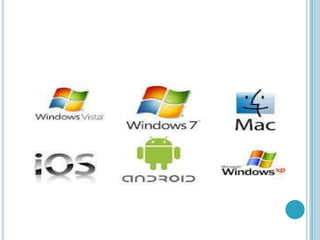 El documento proporciona información sobre software y sistemas operativos. Define software como el conjunto de componentes lógicos de un sistema informático que hacen posible la realización de tareas específicas. Describe varios tipos de software como hojas de cálculo, bases de datos, procesadores de texto y aplicaciones. También explica conceptos clave de los sistemas operativos como la gestión de procesos, memoria, almacenamiento, entrada/salida, archivos, protección, comunicaciones y programas de sistema. Finalmente, enumera ejemplos popul