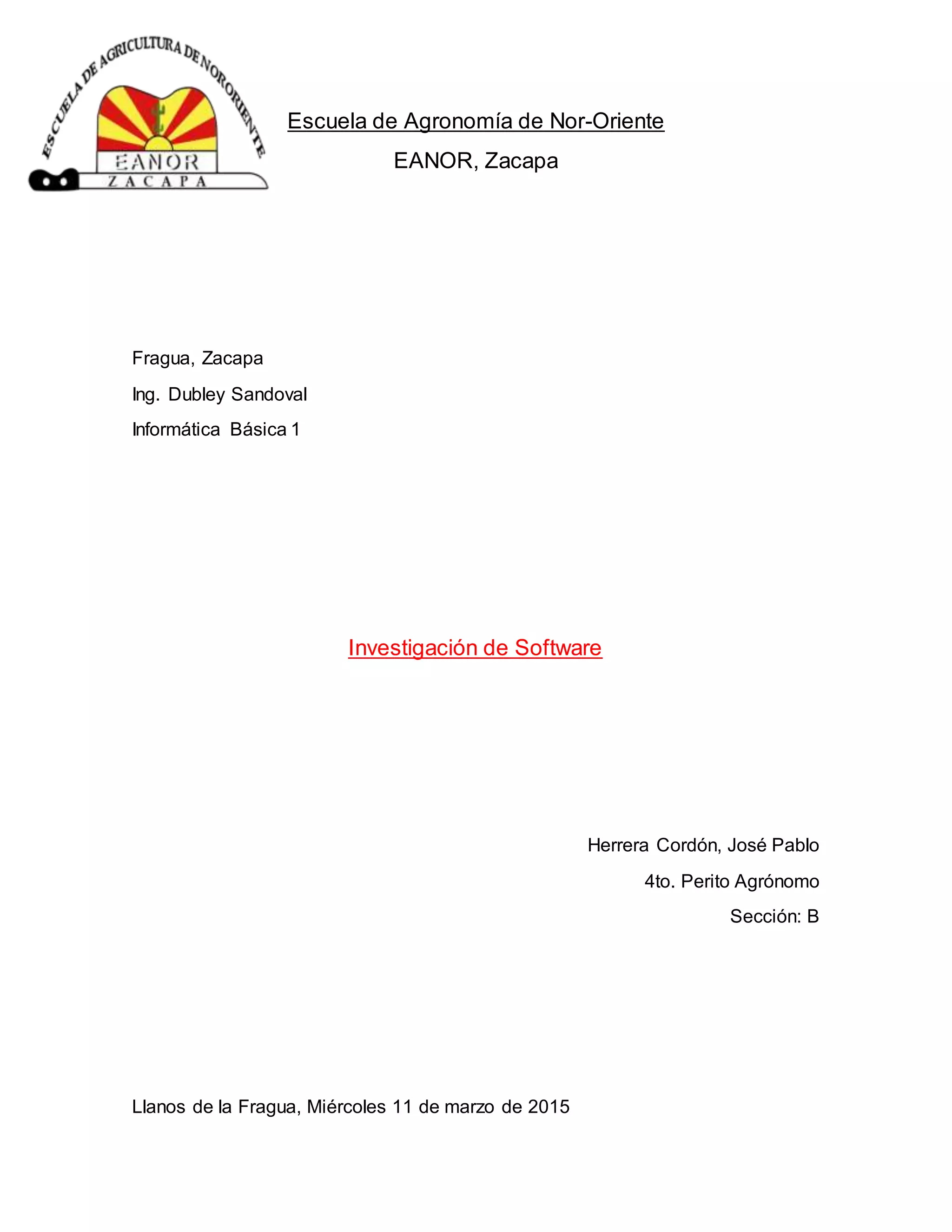 El documento define software como un conjunto de instrucciones y datos que permiten realizar tareas en un sistema informático. Explica que hay tres tipos principales de software: software de sistema como los sistemas operativos, software de aplicación como procesadores de texto y hojas de cálculo, y software de programación como compiladores e intérpretes. También describe las funciones básicas de un sistema operativo como la administración de recursos, archivos, tareas e interfaz de usuario.