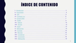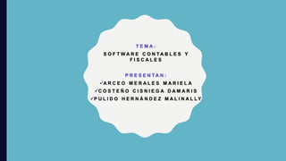 Este documento presenta 13 software contables y fiscales mexicanos, incluyendo Pacontador, SAI, Contador MX, Control 2000, Softlik, Villanet, Sinube, Aspel, Miskuentas, Compaq, Microsip, Contalinea y describe brevemente sus características principales.