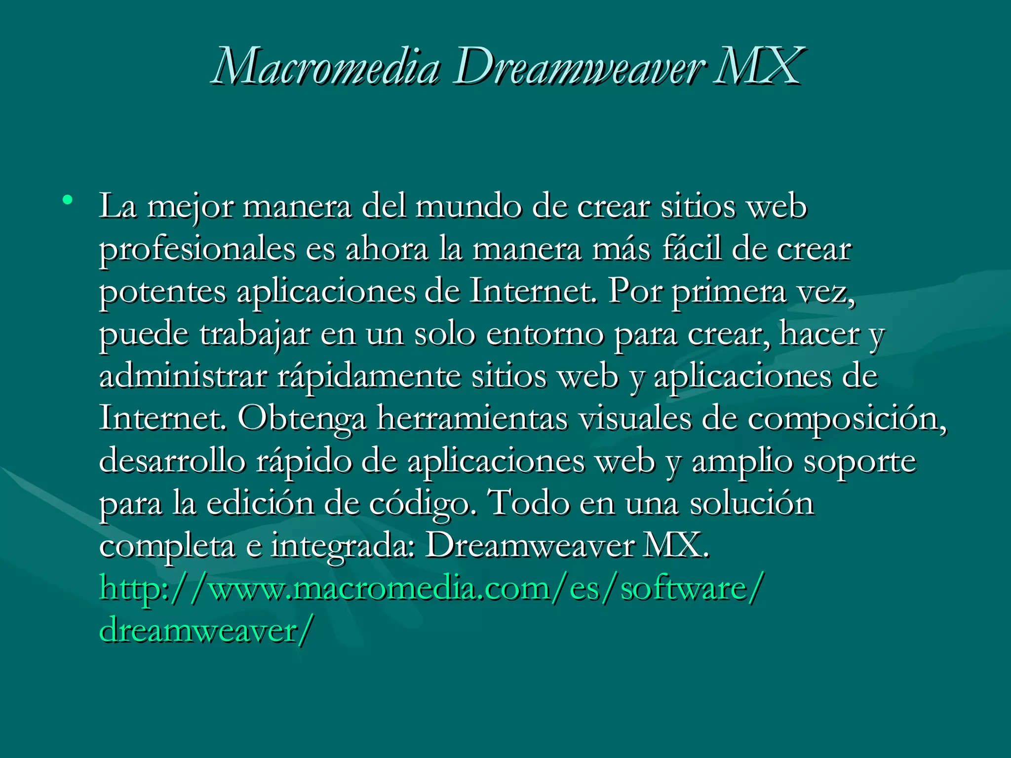 El documento compara varios software de HTML. Dreamweaver MX de Macromedia permite crear sitios web y aplicaciones de Internet de forma profesional y fácil en un solo entorno. Microsoft FrontPage facilita la creación y gestión de sitios web desde la interfaz de Office. HotDog Profesional es un robusto editor HTML con soporte para código HTML, CSS, ASP y más. El documento también menciona algunos editores HTML gratuitos como Web-O-Rama y 1st Page 2000.