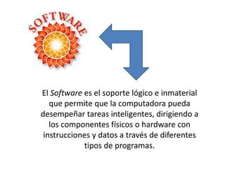 El documento define tres tipos de software: software de sistema, que controla el hardware y da soporte a otros programas; software de aplicación, que incluye programas para tareas específicas como ofimática, medicina y contabilidad; y software de programación, que permite a los desarrolladores crear programas usando lenguajes de programación y herramientas como compiladores e intérpretes.