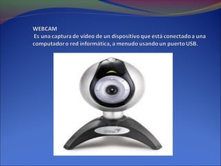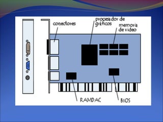 Una tarjeta de video es un componente electrónico que genera una señal para mostrar imágenes en un monitor. Controla la apariencia y calidad de la imagen. Existen diferentes tipos como CGA, VGA y SVGA que ofrecen diferentes resoluciones y colores. Una tarjeta de video consta de una unidad de procesamiento gráfico, memoria de video y un convertidor digital-analógico.