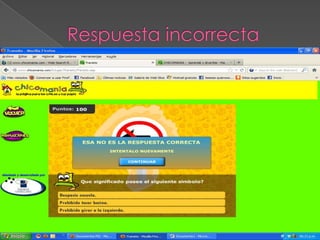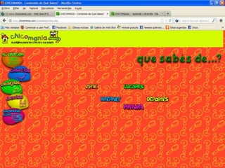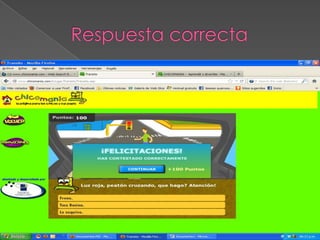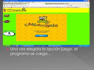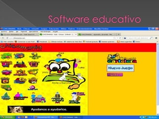 Este documento describe un juego educativo en el que los participantes responden preguntas y avanzan al marcar la opción correcta, o se les da otra oportunidad si se equivocan. Una vez terminado el juego, los usuarios pueden volver al menú principal y seleccionar otros juegos disponibles. El software se recomienda porque permite a los niños socializar, comunicarse, aprender, acceder información y divertirse a través de diferentes juegos educativos.