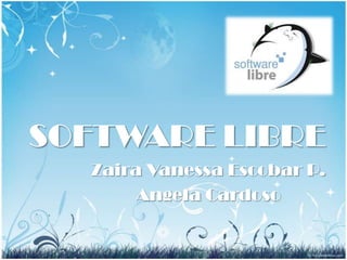 El documento describe el software libre, que se refiere a la libertad de los usuarios para ejecutar, copiar, distribuir, estudiar, cambiar y mejorar el software. El software libre promueve valores como la ética, la creatividad, la eficiencia, la colaboración y la libertad. Las licencias libres permiten la copia, modificación y redistribución del software y protegen las libertades fundamentales de los usuarios.