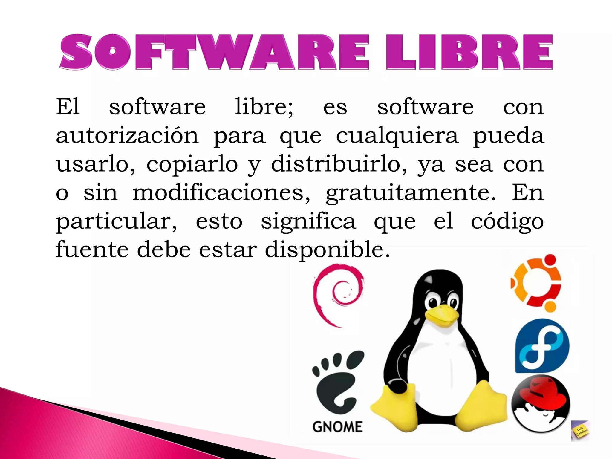 El software libre se refiere a software que puede ser usado, copiado, distribuido y modificado libremente por cualquier persona. Para ser considerado software libre, el código fuente debe estar disponible y el software debe otorgar cuatro libertades clave: la libertad de ejecutar el programa para cualquier propósito, estudiar y modificar el código, redistribuir copias sin costo, y distribuir copias modificadas.