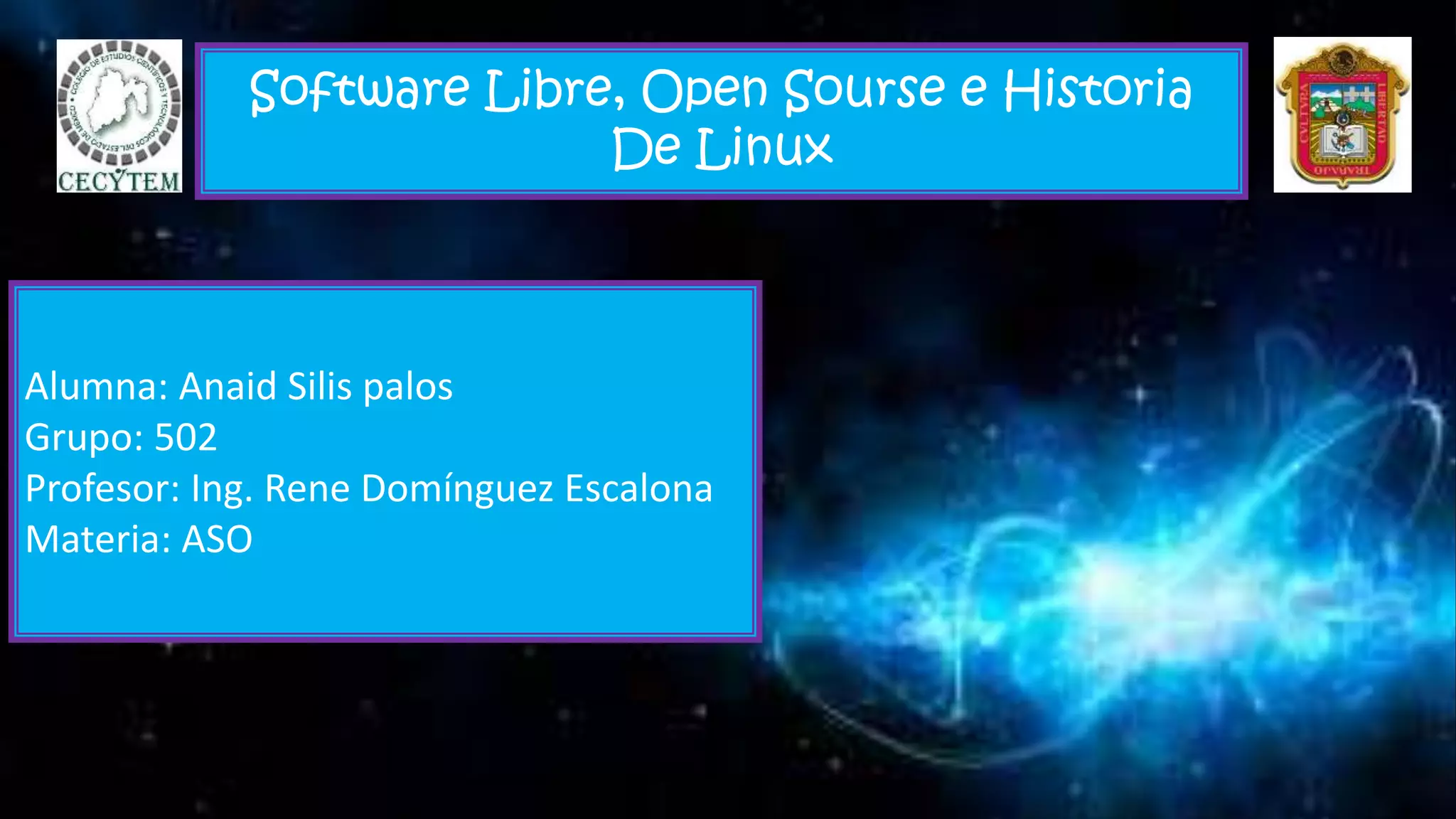Linux es un sistema operativo de código abierto creado originalmente por Linus Torvalds en 1991. Combina el núcleo Linux con las herramientas y bibliotecas del proyecto GNU para formar un sistema operativo completo tipo Unix. Linux se ha vuelto muy popular debido a que es gratuito, de código abierto y funciona en una amplia variedad de hardware.