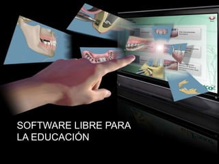 El documento describe las ventajas del uso de software libre en la educación. Algunas de las principales ventajas son que reduce los costos al evitar licencias por cada máquina, permite que los estudiantes usen el mismo software que se enseña en la escuela, y ofrece control y flexibilidad sobre el software utilizado. Además, el software libre enseña habilidades independientes de marcas específicas de software y es una herramienta útil para el aprendizaje en el área de informática.