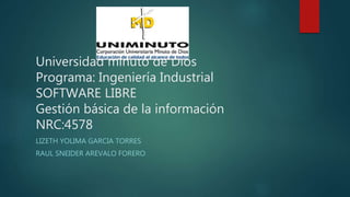 Este documento define el software libre como software que otorga a los usuarios la libertad de ejecutar, copiar, distribuir, estudiar, cambiar y mejorar el software. Explica que el software libre se caracteriza por tener código abierto, licencias abiertas y acceso a programas gratuitos. Además, menciona ejemplos populares de software libre como Linux, OpenOffice, Notepad++ y Gimp.