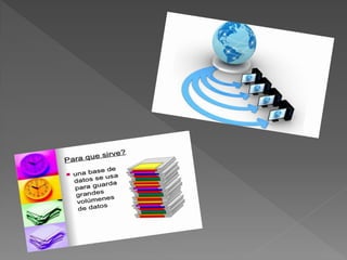 Una base de datos es una colección de información organizada que puede ser accedida rápidamente por computadoras. La información se almacena y cataloga de forma ordenada en servidores para permitir un fácil acceso a través de un Sistema de Gestión de Base de Datos. Las bases de datos permiten configurar permisos de acceso y edición de datos para diferentes usuarios.