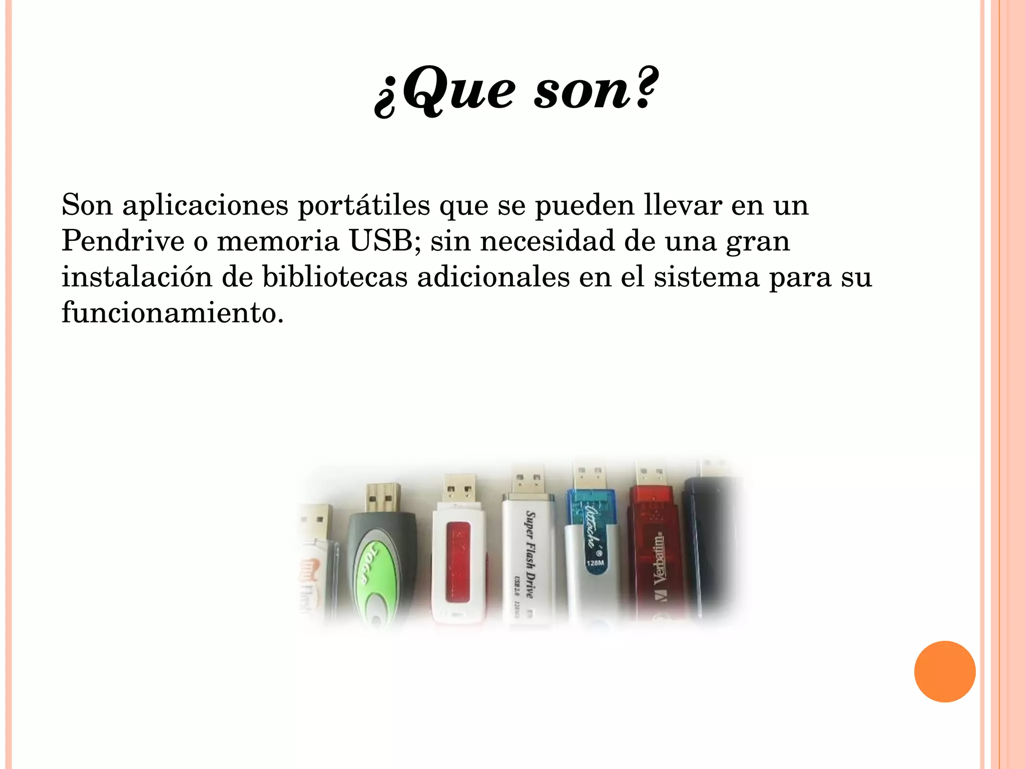 Los software portátiles son aplicaciones que se pueden ejecutar desde una memoria USB sin necesidad de instalación, permitiendo usar los mismos programas en cualquier computador compatible. Existen muchos tipos de software portátil gratuito, incluyendo utilidades, seguridad, productividad, correo electrónico, chat y navegadores. Las memorias USB son una forma práctica de llevar los programas favoritos a cualquier lugar.