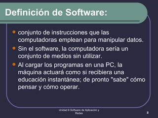 El documento resume las principales categorías de software, incluyendo sistemas operativos, lenguajes de programación, software de uso general y software de aplicación. Describe los tipos de sistemas operativos como multitarea, multiusuario y multiproceso, e incluye ejemplos como Windows y Unix. También resume las categorías de software de uso general como procesadores de texto, hojas de cálculo y bases de datos, así como aplicaciones específicas desarrolladas para tareas particulares.