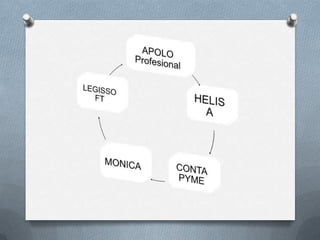 Este documento describe diferentes software contables e investiga sus características. Se analizan programas como Mónica, Helisa y otros, detallando sus funciones como emitir facturas, llevar inventarios, cuentas por cobrar y más. El resumen concluye que los contadores deben mantenerse actualizados sobre normas contables y tecnologías como los software para mejorar los procesos empresariales.