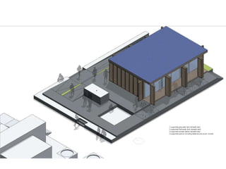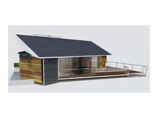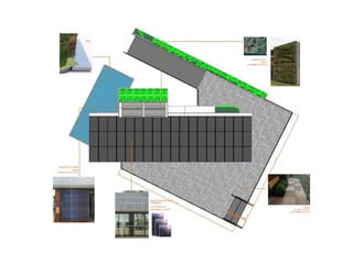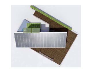 El documento se refiere a referentes para la aplicación de un dispositivo atrapaniebla, incluyendo sistemas de fachadas verdes y de captación solar en Darmstadt, Madrid y Cornell. El dispositivo propuesto convertiría un sistema pasivo de fachadas verdes en uno activo para capturar agua de camanchaca y distribuir confort térmico a la vivienda. También incluiría un sistema en la quinta fachada similar a una cubierta verde para generar beneficios térmicos y agua potable, así como un sistema de fachada doble p