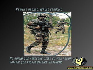 Un soldado le pidió permiso a su teniente para ir a buscar a su amigo que no había regresado del campo de batalla, pero el teniente se lo negó diciendo que probablemente había muerto. El soldado desobedeció la orden y regresó herido de muerte transportando el cadáver de su amigo. Aunque el teniente se enojó porque dijo que había muerto, el soldado muriendo le explicó que cuando lo encontró todavía estaba vivo y le agradeció por ir en su búsqueda.