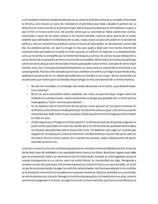 Juno es una joven que sufre de problemas mentales y vive sola en su departamento. Una mañana, cree escuchar voces y ver seres transparentes en su casa. Posteriormente mata a su hermana pequeña y a otro cuerpo que encuentra en su cama, creyendo que son intrusos. Antes de desmayarse, escribe una carta contando lo sucedido. Su madre aparece y le revela que en realidad mató a su hermana, recriminándole su egoísmo y locura. Juno acepta haber perdido la razón y muere con