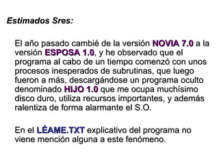 Instalar Esposa 1.0 es como cambiar a un sistema operativo completo que controla todo el sistema. Es imposible desinstalarlo o volver a versiones anteriores como Novia 7.0. Se recomienda manejar la situación lo mejor posible con Esposa 1.0 ejecutando programas como Flores 5.0 o ViajedeVacaciones 3.2 para mejorar el rendimiento en lugar de intentar desinstalarlo.