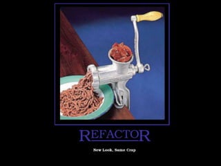 Este documento describe los principios básicos de la programación orientada a objetos como la abstracción, encapsulamiento, herencia, cohesión y polimorfismo. También habla sobre refactorización de código, principios SOLID como responsabilidad única, abierto-cerrado, sustitución de Liskov, segregación de interfaz e inversión de dependencias, y conceptos como mantener la simplicidad y no reinventar la rueda.