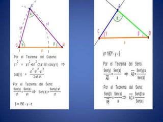 Este documento discute cómo los triángulos rectángulos se pueden aplicar en tres áreas: la economía, la administración y la ingeniería. En economía, los triángulos rectángulos representan la relación entre el costo y la producción. En administración, los principios administrativos como la organización y planificación pueden representarse como figuras geométricas como triángulos rectángulos. En ingeniería, los triángulos rectángulos son la base de las identidades trigonométricas que describen fenómenos físicos como