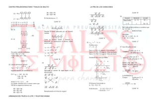 Este documento presenta varios problemas matemáticos y sus soluciones. Incluye fórmulas para sumas de números consecutivos y series numéricas, así como explicaciones y demostraciones de sus aplicaciones correctas. También contiene ejercicios para evaluar la comprensión de conceptos como racionales, irracionales, series y progresiones numéricas.